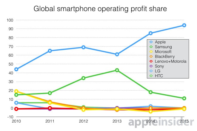 Apple verbucht 94 Prozent aller Smartphone-Gewinne