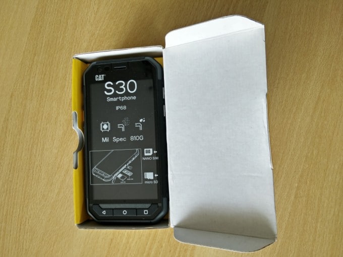Das CAT S30 kommt in einer schicken gelben Verpackung. Im Lieferumfang sin ein Micro-USB-Kabel, der zugehörige Netzadapter, InEar Kopfhörer und sogar Schutzfolien enthalten. Dank der DualSIM Kompatibilität können zwei verschiedene Telefonnummern verwendet werden. Da die beiden Schubfächer für die Karten wasserdicht verschlossen sind, lassen sich diese recht schwer öffnen. Das restliche Einrichten verläuft jedoch unkompliziert.
