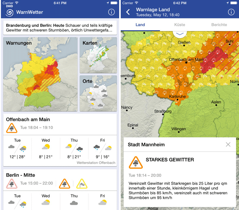 dv-c dwd warnwetter WarnWetter DWD WarnWetter: App für iOS und Android warnt noch genauer vor Unwetter Warnwetter 660x580