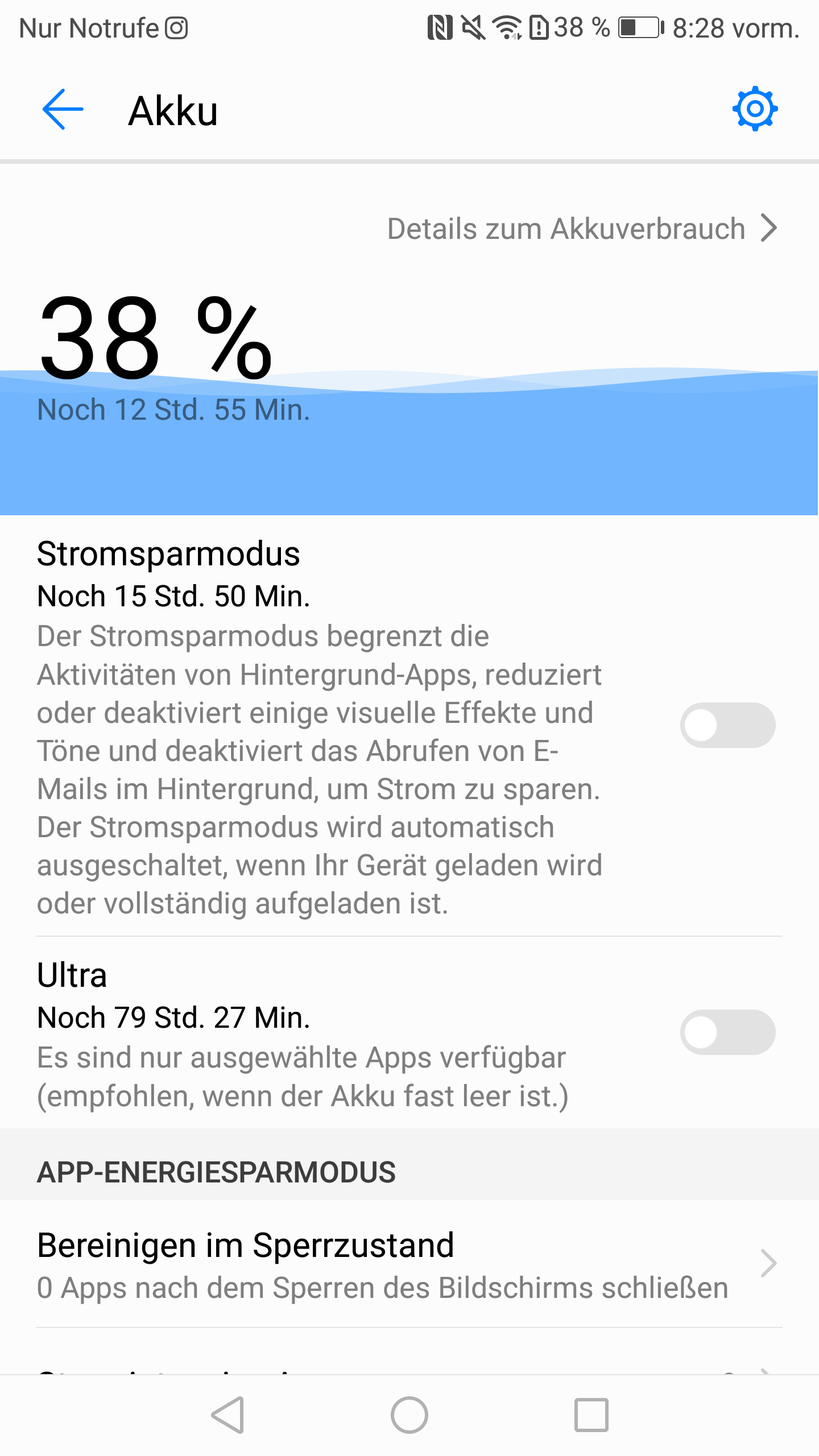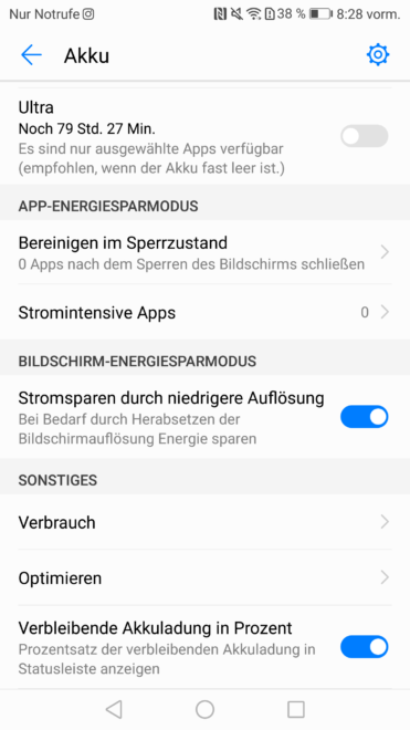 Als Betriebssystem installiert Huawei Android 7 und stattet jenes mit seiner eigenen Oberfläche EMUI 5.1 aus. Jenes bietet nicht nur eine bessere Performance als Vorgängerversionen, sondern zusätzliche Funktionen, beispielsweise das Klonen von Apps. Was uns bei Geräten von Huawei gut gefällt, ist die große Funktionsvielfalt im Betriebssystem. Insbesondere der Akkumanager weiß mit seinen umfangreichen Funktion zur Energieoptimierung zu begeistern. Im Alltag reagierte das System flott und erledigte alles schnell und souverän.