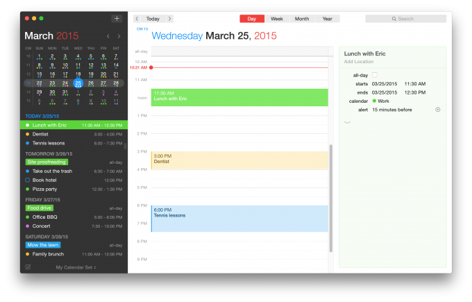 Fantastical 2 gibt es nicht nur für den Mac, sondern auch für weitere Apple-Devices. Verfügbar ist die neuste Version bereits bei iPhone und iPad, welche wir bereits für das iPad getestet haben. Heute folgt nun Version zwei auch für Macintosh-Nutzer. Die Kalenderapp kann durchaus mehr, als der Standardkalender von Apple. Das wichtigste Feature ist das Erstellen von Terminen und Erinnerungen mittels der Sprache. Beispielsweise lassen sich durch „Erinnere mich um 11 Uhr an TechnikSurfer Backup“ Erinnerungen, beziehungsweise mit „Essen mit Oliver am 1. April um 20 Uhr“ Kalendereinträge erstellen. Die größte Neuerung bei der zweiten Version ist jedoch das Flatdesign, welches sich nun an OS X Yosemite orientiert. Zudem verfügt die Application nun über ein großes Appfenster und nicht nur ein „Toolfenster“. Selbstverständlich gibt es dieses Minifenster auch weiterhin als Ergänzung zu dem Kalender.