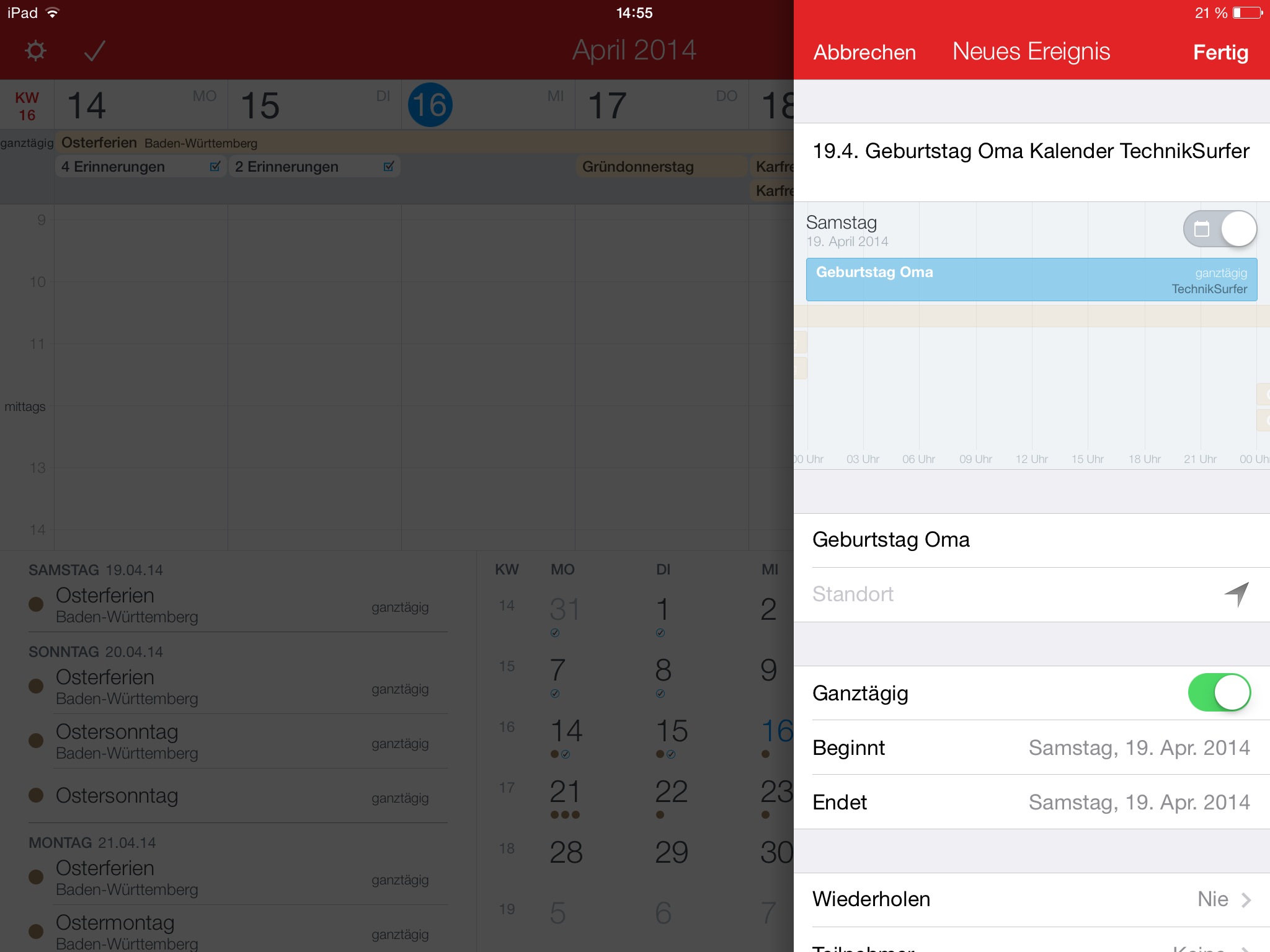 […] gibt es die App allerdings auf perfekt angepasst für das iPad. Diese haben wir übrigens bereits hier auf dem TechnikSurfer getestet. Das größte Feature Fantastical 2 ist das intelligente Anlegen von Ereignissen und Erinnerungen. […]