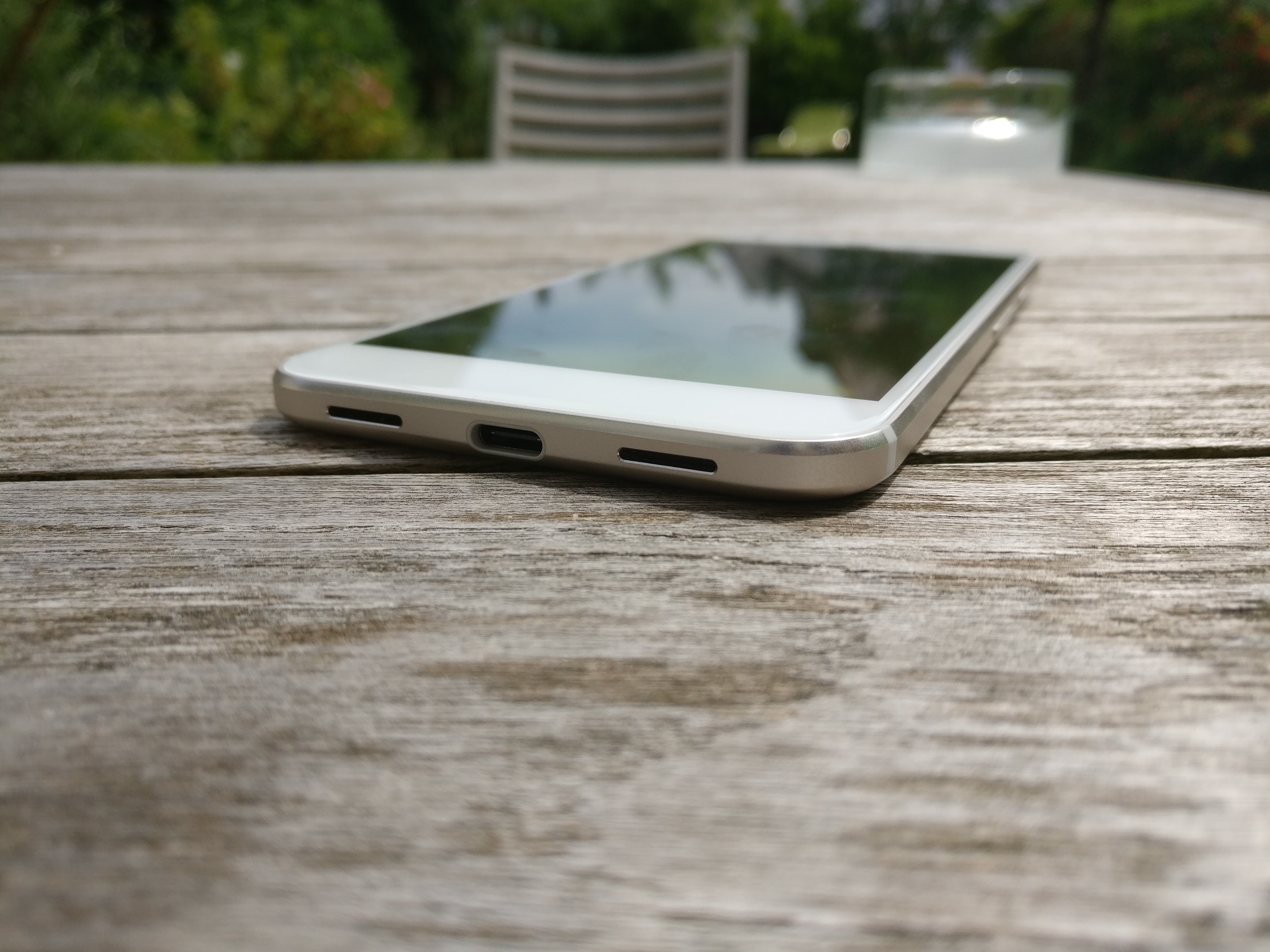 Das Gehäuse des Google Pixel besteht aus einem einziges Aluminium-Guss. Die Ecken und Kanten sind alle abgerundet. Es wirkt sehr edel in der Hand. Auf der Unterseite des Geräts befinden sich zwei Lautsprecher. Den Klang empfinden wir als voluminös und gut ausgewogen in den Höhen und Tiefen. Ebenfalls an der Unterseite befindet sich der USB-Type-C Anschluss. An der rechten Seite befinden sich der Power-Button sowie die Knöpfe zum Lauter- und Leiser machen. Die Buttons lassen sich mit etwas Druck betätigen, machen jedoch ein etwas blechernes Geräusch. Oben befindet sich nur noch der 3,5mm Klinkenanschluss für Kopfhörer und Headsets. Auf der linken Seite befindet sich der Slot für die SIM-Karte. Das Google Pixel gibt es in zwei verschiedenen Ausprägungen. Wählbar ist zwischen einem 5,5 Zoll und einem fünf Zoll AMOLED-Display. Beide Modelle sind jeweils in Anthrazit sowie Silber erhältlich.