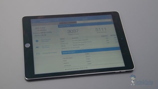 In dem iPad Pro 9,7 Zoll sind die Komponenten des 12,9 Zoll großen Bruders verbaut. Hierbei handelt es sich zum Einen um den A9X Prozessor und zum Anderen um den M9 Co-Prozessor. Mit der 64-bit Architektur möchte das Duo vor allem das iPad Air abhängen. Leider ist der Arbeitsspeicher – wie beim iPad Air 2 – nur zwei Gigabyte groß und bietet deshalb keine Besserung. Im Vergleich der großen Variante, welche vier Gigabyte RAM besitzt, ist der Prozessor sogar gedrosselt. Warum verrät Apple nicht. Nichts desto trotz lässt sich im Speedcheck gemeinsam mit dem iPad Air und dem Air 2 sofort ein Unterschied erkennen. Apps lassen sich deutlich schneller öffnen und Internetseiten sind schneller laden. Der Unterschied zwischen dem iPad Air 2 und dem iPad Pro ist jedoch nicht groß, weshalb dieser im Alltag nicht auffällt. Schuld ist jedoch vor allem das Betriebssystem und die Apps. Der Prozessor kann nicht mit der vollen Leistung glänzen. Das zeigen vor allem Benchmark Tests, welche dem iPad Pro einen deutlich verbesserten Prozessor zuschreiben.