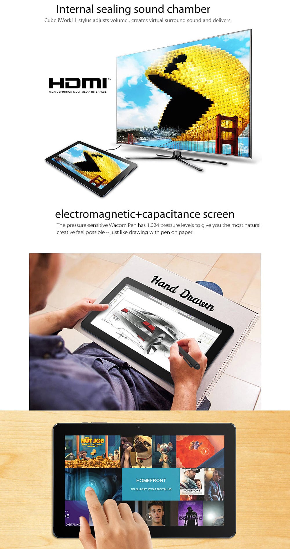Auch die größere Variante des Cube iWork ist über den Feiertag reduziert. Der iWork 11 ist 10,6 Zoll groß und dient ebenfalls mit FullHD. Auch hier kommt der Prozessor von Intel, allerdings wird der Intel Cherry Trail Z8300 verbaut. Der RAM ist ebenfalls vier Gigabyte groß, der interne Speicher ist mit 64 Gigabyte ebenfalls unverändert. Die Kamera auf der Rückseite löst mit fünf Megapixel auf, die Front dient auch hier mit mageren zwei Megapixel. Bei einem größeren Bildschirm darf der größere Akku nicht fehlen. Cube spendiert dem größeren Modell üppige 8.000 mAh. In Sachen Konnektivität bietet die teurere Variante keinerlei Vorteil, ebenso beim Betriebssystem. Für einen Aufpreis von knapp 40 Euro bei Gearbest kann dieses Modell dennoch eine Überlegung wert sein. Bei Gearbest kostet das Cube iWork 11 derzeit nur 190 Euro*.
