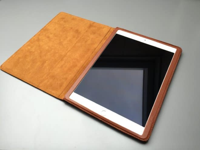 Nur der Smart Connector ist dank Hülle nicht erreichbar, allerdings würde sich die Benutzung dessen auch durch den Rest der Hülle als schwierig erweisen. Das Laden des iPad beispielsweise mit der Logi Base ist so nicht möglich. Da die komplette Hülle aber aus Leder besteht kann sie auch einfach abgenommen werden, ein Brechen nach häufiger Benutzung , wie es bei manchen Plastikhüllen der Fall wäre, ist hier unmöglich. Der Schutz der Hülle bedeckt zu großen teilen auch den Displayrahmen und spart so lediglich das Display aus, was einen weiteren Schutz vor Kratzern bietet, da so der Deckel nicht direkt auf dem Display aufliegt.