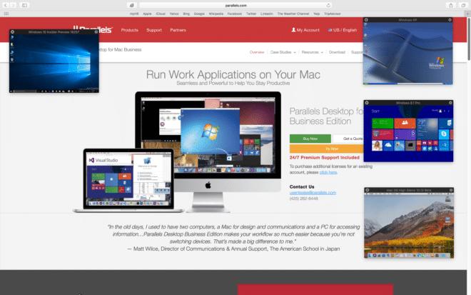 Seit heute ist Parallels Desktop 13 verfügbar. Mit der Software ist es so einfach wie irgend möglich, mehrere Betriebssysteme parallel auf dem Macintosh laufen zu lassen. Mit dem Upgrade ist die Software nicht nur macOS High Sierra kompatibel, sondern wurde auch an das ausstehende Windows 10 Fall Creators Update angepasst. Das Highlight ist der Touch Bar Support für das MacBook Pro. Während diese normalerweise brach liegt, bringt Parallels Desktop 13 die Taskliste in die Touch Bar. Darüberhinaus können Nutzer sämtliche Funktionen innerhalb von Programmen festlegen, die über die Touch Bar ausgeführt werden können. Möglich ist dies beispielsweise in Browsern oder Microsoft Word.