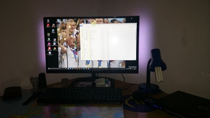 Ein weiteres cooles Feauture des Philips Gioco ist Ambiglow. Der Philips Gioco besitzt auf der Rückseite sechs LEDs, mit welche passend zu dem Bildschirminhalt leuchten. Viele werden dies von Philips Ambilight für den Fernseher kennen. Wird beispielsweise in FIFA 15 das Fußballfeld dargestellt, leuchten die Leuchtdioden in demselben grün. Beim Surfen im Internet, beim Abrufen von E-Mails oder dergleichen erstrahlen die Lichter in weiß. Dieses Feature hat mir an dem Philips Gioco am meisten beeindruckt. Vor allem bei Nacht kommt hier eine richtige Gamingatmosphäre auf.