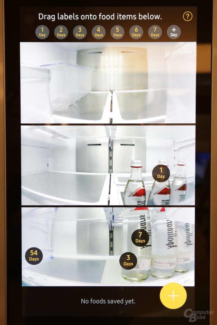 Unter der Haube, besser gesagt hinter der Türverkleidung, werkelt ein quad-core Prozessor mit 1,3 GHz. Wie groß der Arbeitsspeicher ist, ist leider unbekannt. Dafür wurde ComputerBase verraten, dass der Speicherplatz acht Gigabyte groß ist. Fünf Gigabyte davon können selbst von dem Nutzer belegt werden. Vorinstalliert sind Apps für Bildergalerien, Wetter, Webradio, Einkaufslisten und Notizen. Eine App für die Kühlschranksteuerung darf natürlich nicht fehlen. In den Türen sind drei Kameras eingebaut, welche die drei Etagen im Blick behalten. Die Live-Bilder können dann über das integrierte Display oder über das Smartphone angeschaut werden. Damit der Nutzer immer alles im Blick hat, können den Lebensmitteln sogar Haltbarkeitsdaten zugewiesen werden. Diese Daten werden dann entsprechend in dem Live-Bild eingeblendet, sodass kein Einkauf mehr schief gehen sollte. Natürlich muss der Kühlschrank dazu mit dem Internet verbunden sein. Deshalb stattet Samsung das Gerät mit W-LAN b/g/n aus.