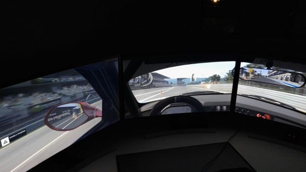 Der Surround-Modus lässt sich nur verwenden, wenn die eingebaute Grafikkarte dies mitmacht. Ist das der Fall lösen die drei Monitore gemeinsam mit 5.760×1.080 Pixel auf. Doch wer glaubt, dass das keine Einbußen auf die normale Desktop-FPS hat, der hat sich geschnitten. Besonders bei Spielen stößt die GPU schnell an ihre Grenzen – hohe Temperaturen und laute Geräusche garantiert. Im Test habe ich im Triple-Monitor-Setup Project Cars auf Ultra gespielt. Alles optimal. Kleine Laggs waren vereinzelt da, aber ob der Monitor daran schuld ist, bezweifle ich. Wie bereits erwähnt wurden vor allem meine Füße enorm warm. Dafür wurde das Periphere Sichtfeld erweitert, sodass ich alles im Blickfeld hatte.