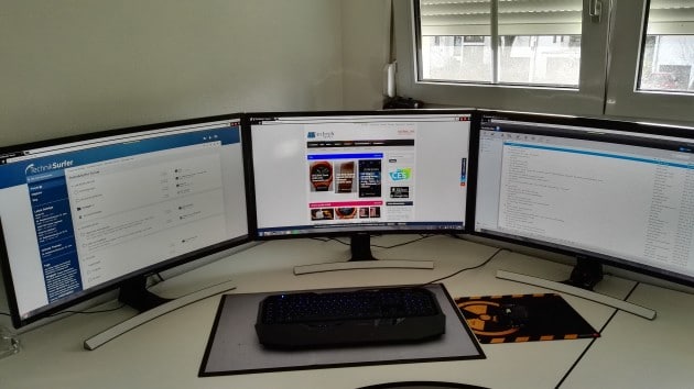 Bei dem Curved Monitor S32E590C LED – was für ein komplizierter Name – handelt es sich um einen 32 Zoll großen Curved Desktopmonitor aus dem Hause Samsung. Der südkoreanische Hersteller wirbt bei dem Monitor mit brillianter Bildqualität aus jedem Winkel, sowie mit einem ultimativen Sehkomfort. Ob diese Versprechen gehalten werden? Der Test soll es zeigen! Freundlicherweise wurden uns direkt drei Monitore für den ausgiebigen Test zu Verfügung gestellt. In dem Artikel behandle ich je einen Monitor nach seiner Leistung und seinem Können. Auch die Monitor-Kombination werde ich erläutern.
