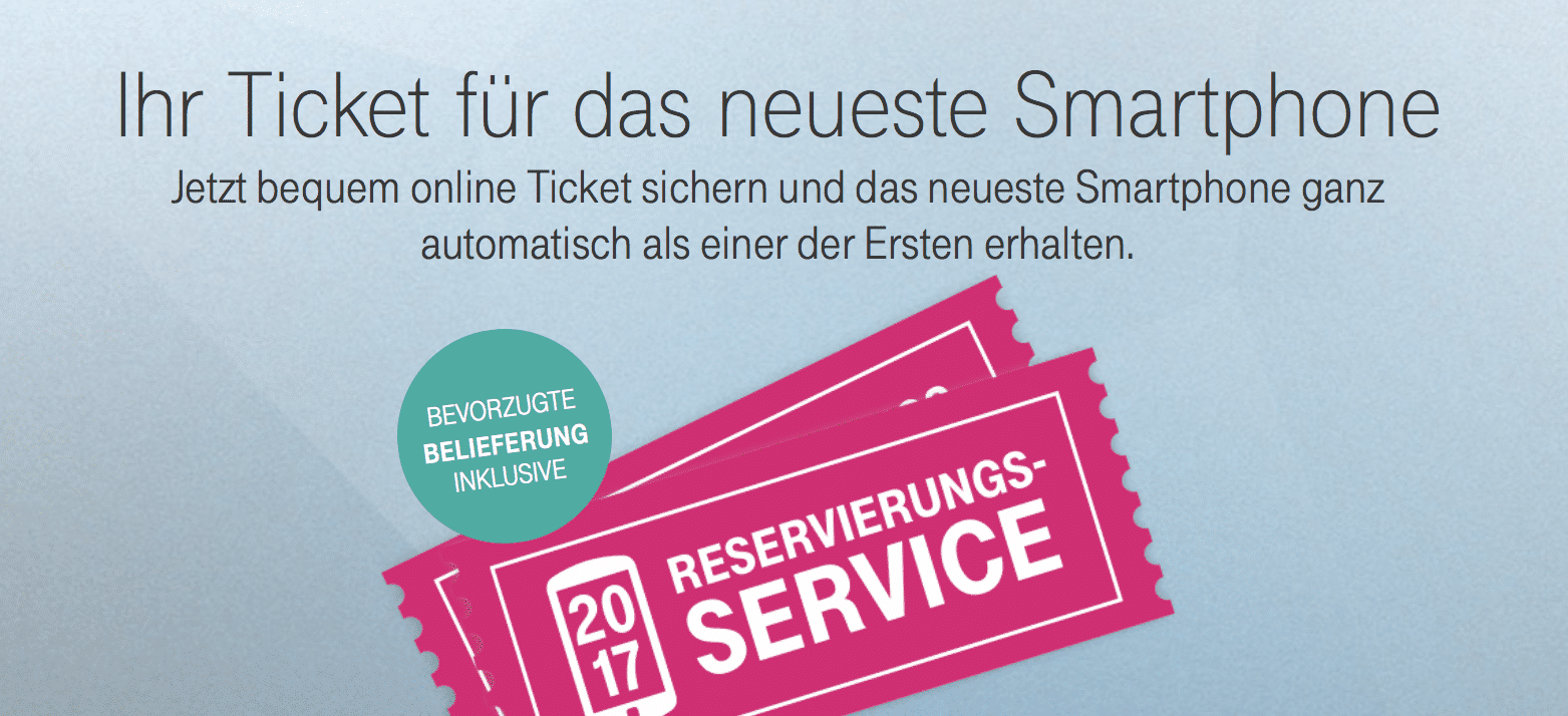 Originalartikel vom 14. August: Bei der Telekom werden seit heute wieder Premierentickets für „das neuste Smartphone“ angeboten. Der Provider verzichtet bei seinem Reservierungsservice wie auch schon im letzten Jahr auf die konkrete Nennung des Smartphones, dafür werden diesmal die Hersteller Apple, Samsung und Huawei genannt. Dennoch gibt es im Gegensatz zu 2016 zwei kleine Änderungen. Die Premierentickets wird es nämlich nicht nur auf Nachfrage geben, sondern sollen diesmal vor allem in den Shops aktiv beworben werden. Zudem müssen Kunden bereits bei der unverbindlichen Reservierung ihre kompletten Kundendaten angeben und erhalten bei Bestellstart eine E-Mail mit einem Link zur freiwilligen Bestellung.