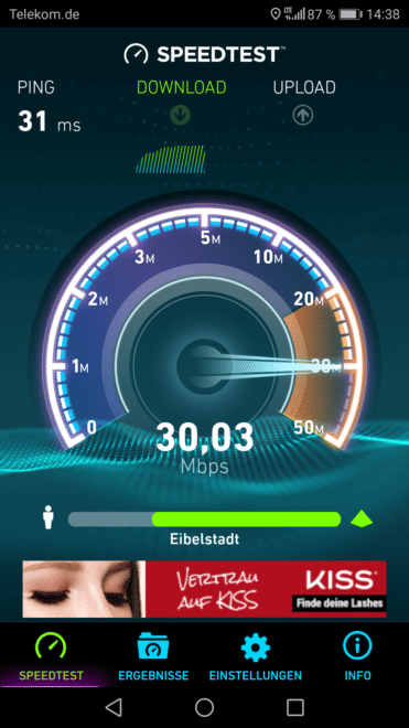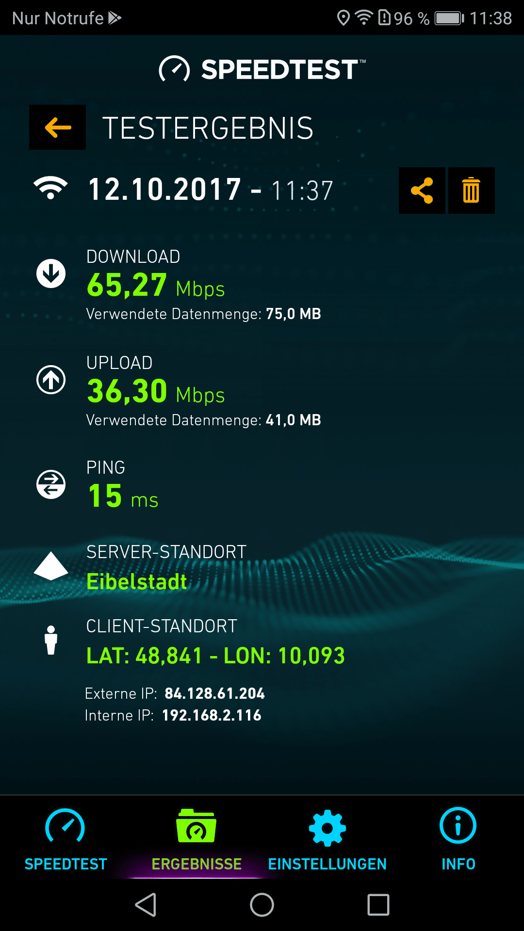 Als Prozessor soll der hauseigene Kirin 659 überzeugen, der mit ausreichend Performance punktet. Im Alltag sind keine Ruckler zu spüren, auch aufwendigere Spiele, wie beispielsweise Asphalt Street Storm, meistert der Chip mit Bravour. Grafiken werden sehr scharf dargestellt, wird es für den Prozessor doch etwas aufregender – wie etwa bei Asphalt – wird das Huawei nova 2 nach einiger Zeit ein bisschen warm. Im Geekbench-Test erzielte unser Gerät 3.436 Punkte im Multi-Core, beim Samsung Galaxy Note 7 wären es vergleichsweise 5.228 Punkte gewesen. Einziger Nachteil: Es wird lediglich auf ein 2,4 GHz Band gesetzt, auf das 5 GHz Band muss bei W-LAN verzichtet werden. Im Speedtest-Vergleich war das Huawei nova 2 durchschnittlich 10 Mbit/s langsamer, als das iPhone 7 – gemessen wurde bei einer 100 Mbit/s Leitung. Dafür erzielten beide Smartphones im selben LTE-Netz gleiche Werte.