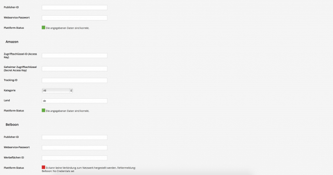 Wir haben die Partnernetzwerke Affili.net und Amazon in unserem Preisvergleich integriert. Während die Verbindung zwischen dem eigenen Blog und Affili.net leicht und innerhalb weniger Minuten passiert, ist die Verbindung zu Amazon schon etwas aufwendiger. Bei Affili wird lediglich die eigene Publisher-ID sowie das Webservice-Kennwort benötigt, welches man aus den Einstellungen bei Affili auslesen kann. Hierbei handelt es sich aber nicht um das Webkennwort, welches für die manuelle Anmeldung auf der Website benötigt wird. Bei Amazon ist das ganze schon etwas schwieriger, aber mit der Anleitung von Markus machbar. Ohne diese wären wir wahrscheinlich ein wenig aufgeschmissen gewesen. Zunächst muss man nämlich auf eine englische Website, welche ausschließlich über einen direkten Link erreichbar ist. Dort muss man sich dann eine API Key App erstellen, welche nach dem Prozess die benötigte API und API Secret ausspuckt. Des weiteren muss man dann noch in den Einstellungen von Affiliate Booster die Tracking-ID sowie das entsprechende Land hinterlegen. Sind die Netzwerke aber erst einmal verbunden, muss man mit dieser Einstellung nichts mehr machen und die Software läuft.