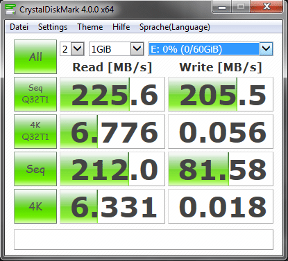 Die Marke Toshiba zeigt einem schon beim Aufpacken wie schnell TransMemory-EX II sein soll. Doch stimmt das? Die Verpackung verspricht, dass der Stick mit bis zu 205 MB/s Dateien auf den Datenträger schreiben, als auch die Dateien mit bis zu 222 MB/s lesen kann. Laut Hersteller kommen diese Zahlen bei einer Datenmenge von einem Gigabyte zustande. Wir haben getestet, ob gehalten wird, was Toshiba verspricht. In unserem Test wählten wir ebenfalls einen GB Datenmenge und verwendeten einen USB 3.0 Port. Und das ist das Ergebnis: