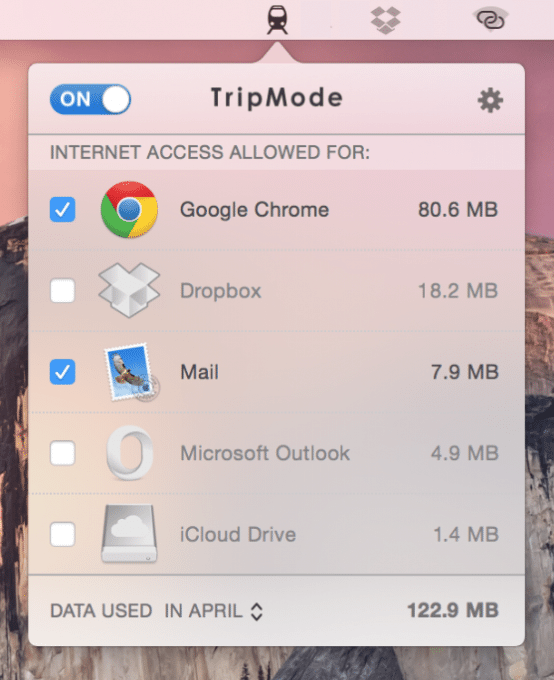 Tripmode heißt das Tool, welches seit Ende Mai auf dem Markt ist. Hierbei handelt es sich um eine Software, welche für den Mac entwickelt wurde. Die Installation geht schnell von statten. Nachdem die Software installiert wurde, kann es schon losgehen. Eine Konfiguration ist nicht nötig. Das Design ist schlicht und auf Schnickschnack wird verzichtet. Sobald die Software gestartet wurde, ist das Tripmode-Icon in der Menüzeile von OS X zu finden. Mit Klick öffnet sich eine kleine Menüzeile, über welche die nötigen Einstellungen vorgenommen werden können. Die Bedienung ist übersichtlich und sofort verständlich. Eine Anleitung oder dergleichen ist nicht von Nöten.