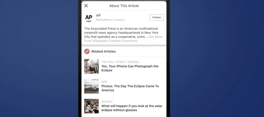 Die Vorhaben waren noch nicht genug, weshalb ein neues Info-Tool für Nutzer in den USA an den Start geht. Bei Posts im Newsfeeds möchte Facebook künftig Informationen zu dem Artikel hinterlegen, damit der Leser sich weitere Informationen über die verlinkte Quelle einholen kann.