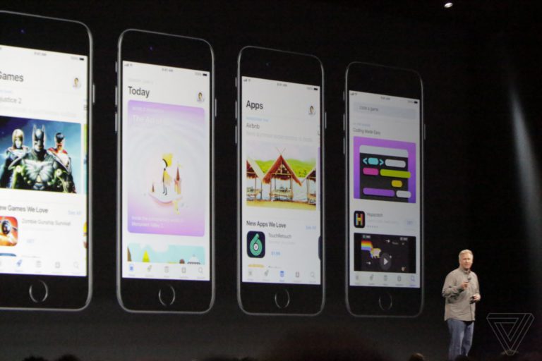 Apple erneuert nach 9 Jahren seinen Store mit einem brandneuen Design. Es gibt an der unteren Seite drei Tabs. Auf dem ersten Tab „Today“ werden täglich neue beliebte Apps kurz vorgestellt und dem Benutzer schmackhaft gemacht. Man findet hier auch tägliche Rankings. Der zweite Tab „Games“ spezialisiert sich voll und ganz auf Spiele. Hier findet man neben Spiele-Empfehlungen aber auch Video-Guides von den Entwicklern. Auch Ingame-Einkäufe kann man sich in diesem Tab ansehen. Wer sich nur für Apps interessiert, der konzentriert sich auf den letzten Tab „Apps“. Auch hier gibt es wieder Empfehlungen und Vorschläge von den Entwicklern.