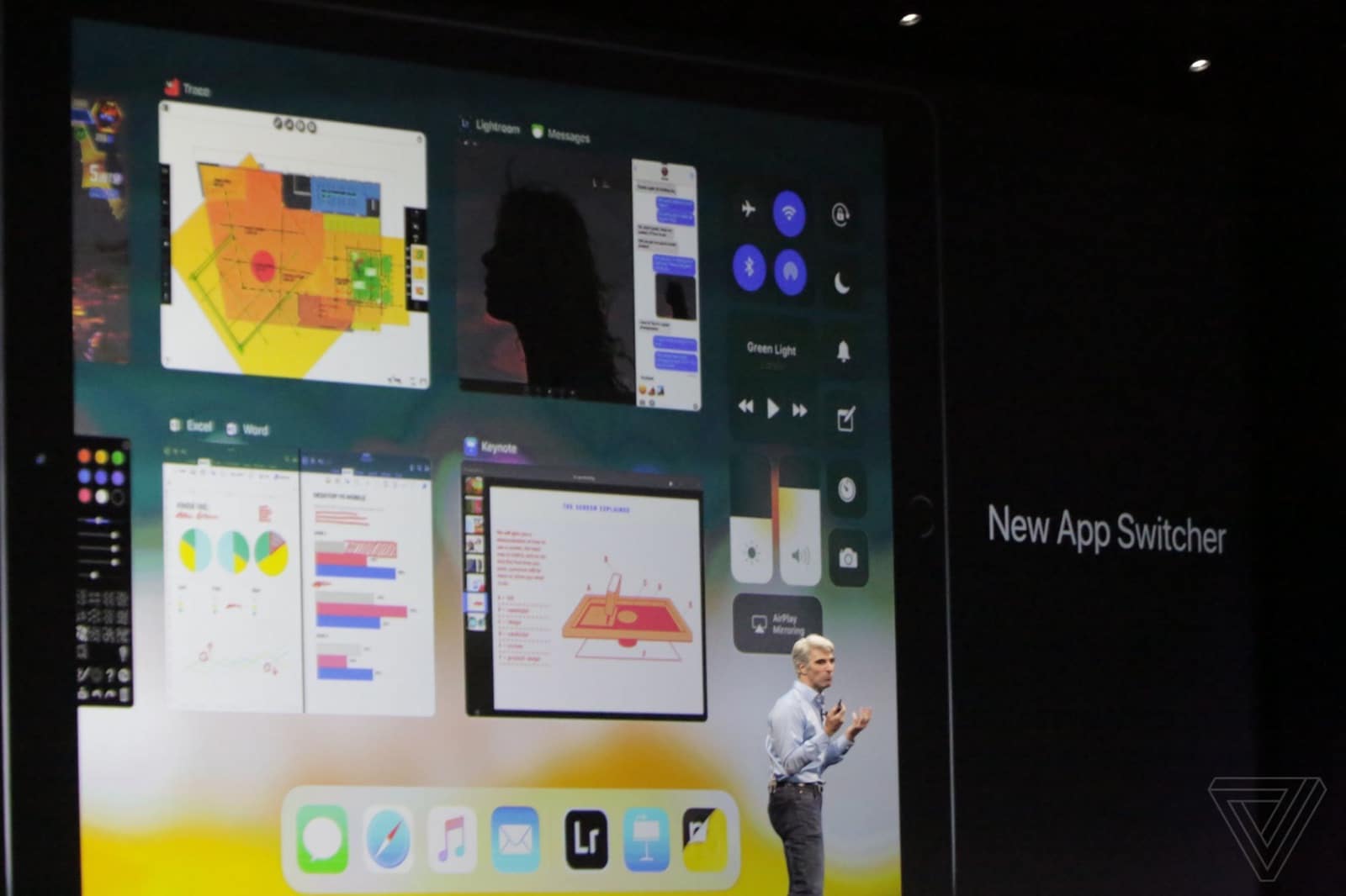 Auch für das iPad wurden einige iOS Neuerungen bekannt gegeben. Es gibt ein neues Dock, dass sich ausblenden lässt – ähnlich dem vom Mac. Mit dem neuen Splitview ist Multitasking kein Problem mehr. Außerdem gibt es einen neuen App-Switcher. Ein neues Drag-and-Drop System erleichtert die Bedienung. Ebenso zur schnelleren Nutzung wurde QuickType veröffentlicht. Diese Funktion vereinfacht die Tastatur auf das Nötigste. Die neue App „Files“ wurde veröffentlicht. Ein Dateimanager, mit dem Daten auch von verschiedenen Drittanbietern wie Dropbox verwaltet werden können. Auch hier ist die neue Drag and Drop Funktion von Vorteil. Ein integrierter Dokumente-Scanner hilft beim Digitalisieren von Dokumenten. Screenshots müssen wie sonst nicht mehr extra gespeichert werden, sondern können sofort bearbeitet oder versendet werden. Mit der neuen Markup-Funktion kann in allen Screenshots, PDFs und vielen anderen Apps schnell und einfach Wichtiges markiert werden.